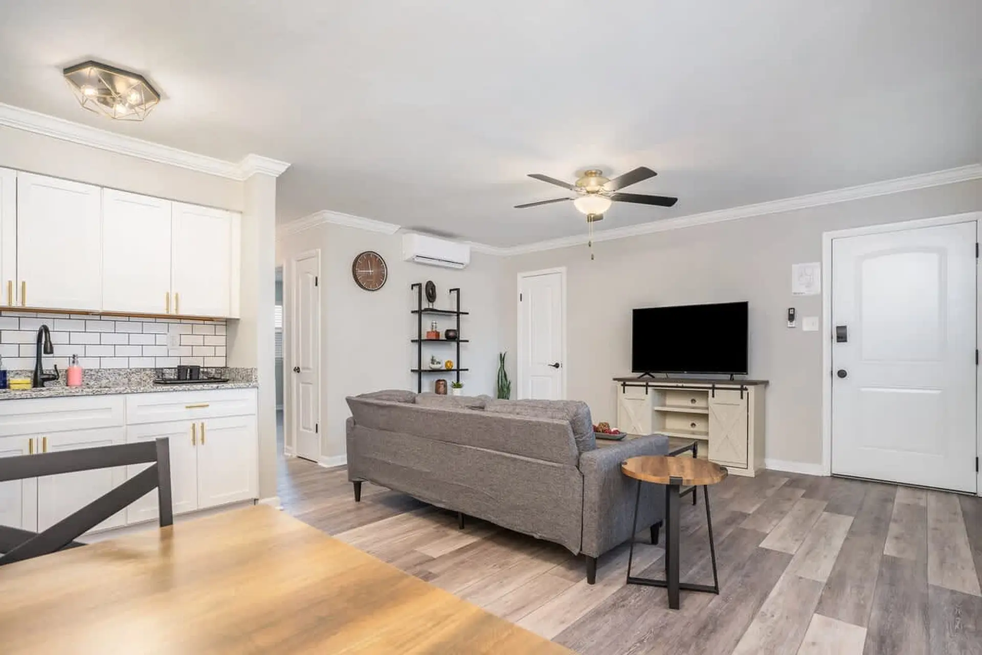 The living room has ample space for relaxation and has a 55" Smart TV and high-speed wifi.