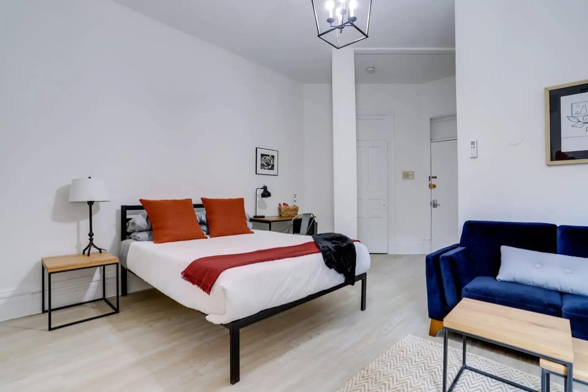 Experience comfort and convenience in this beautifully designed studio apartment, perfect for solo travelers or couples. The open-concept layout blends modern functionality with warm, homey touches.